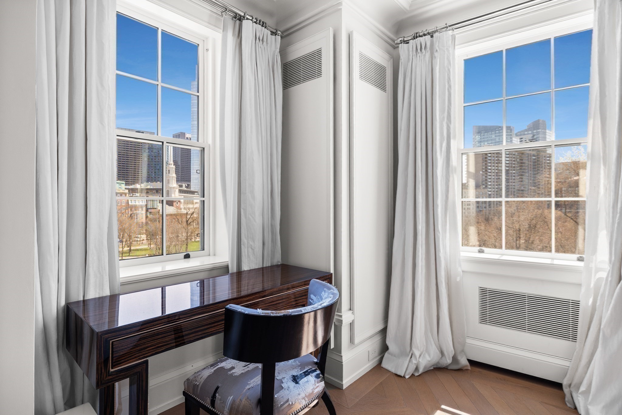 Perched atop Beacon Hill, overlooking the Boston Common and adjacent to the State House, where views will remain forever unobstructed, sits 25 Beacon Street. This extra-wide, row-end building consists of an exclusive collection of 6 residences renovated by Sea-Dar Construction to seamlessly blend 18th-century charm with modern luxury living. Unit 4 at 25 Beacon Street is one of Beacon Hill’s most spectacular and rare residences, with direct elevator access spanning more than 3,500 square feet on one level, and designed to perfection to maximize space + light. This lovingly maintained home feels bright, open, and effortlessly spacious throughout. Other features include a wine cellar, private storage, a bike room, and an on site fitness center. Residents enjoy full-service amenities, including a 24/7 concierge, valet parking, doorman services, and secure underground garage parking for 2 vehicles. Seller will pay up to 1 year of condo fees up front at closing for the future owner!
